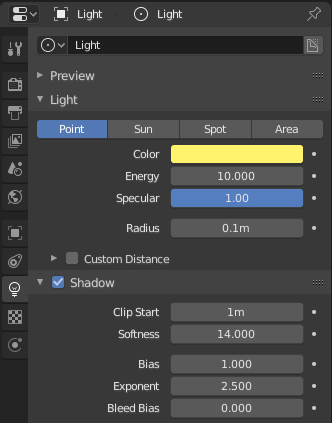 Pour chacun des modes, des réglages sont disponibles dans le menu Shading